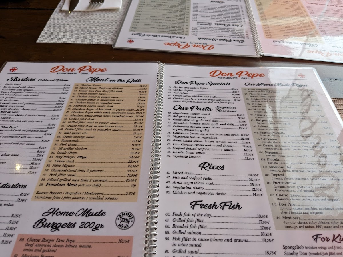 Welcome to Restaurante Grill Don Pepe, a culinary gem nestled in Corralejo, Las Palmas. Famed for its vibrant atmosphere and exceptional service, this restaurant specializes in mouthwatering steak, complemented by a diverse selection of wines. The menu promises generous portions at reasonable prices, making it perfect for families and casual diners alike.
